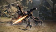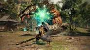 Like in the previous games, players take on the role of a customizable Slayer and battle the supernatural beings known as Oni with up to three party members. However, Toukiden 2 has many additions to the hunting game formula, particularly an open world with connected areas and no loading time between each of them. The combat system has been reworked, with every weapon receiving new moves or effects and two new weapons being added, the sword & shield and the chain whip. A new tool called the Demon Hand gives more mobility and verticality to players, allowing them to perform many different actions both in and out of battle. Other major changes include: